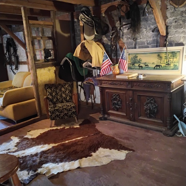 Hier oben über dem Stall befindet sich das Reiterstübchen mit Ofen. Es ist sehr, sehr groß und verfügt über ein Bad mit Dusche und WC. Gleichzeitig ist es unser Heuhotel/Wanderreitstation. Hier oben befindet sich auch die Unterkunft unserer Ferienkinder in den Reiterferien.